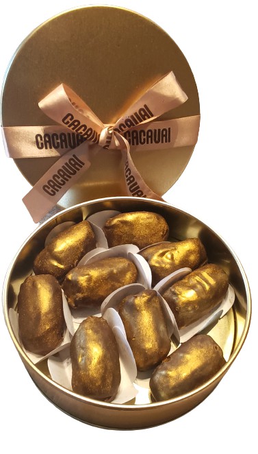 Latinha com 8 unidades. Tâmaras cobertas e recheadas com chocolate 70% cacau de origem. Anti inflamatórias, regula a glicose, antioxidantes, melhora a saúde do intestino etc.